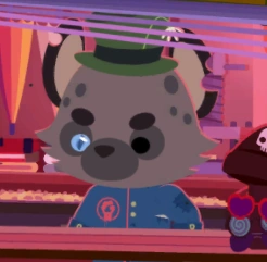 A Super Purple Hyena who is the owner and proprietor of the rotating Cackling Carl's Cart. Together with their Giant Emu Old Doug, they sell exclusive items to players using an in game currency called